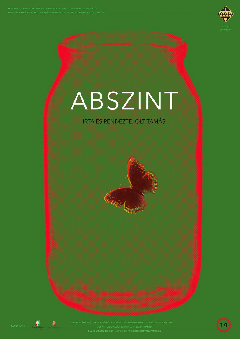 A Marosvásárhelyi Nemzeti Színház Tompa Miklós Társulata újabb bemutatóval várja közönségét szeptember 4-én, immár beltéren, a színház Kistermében. Az Abszint című produkció szerzője és rendezője Olt Tamás, a kaposvári Csiky Gergely Színház művészeti igazgatója. Debreceni ősbemutatója óta a színmű nagy utat tett meg, több nyelvre is lefordították, nemzetközi fesztiválokon, felolvasószínházakban szerepelt, Marosvásárhelyen pedig a kaposvári Csiky Gergely Színházzal való koprodukcióként kerül bemutatásra.