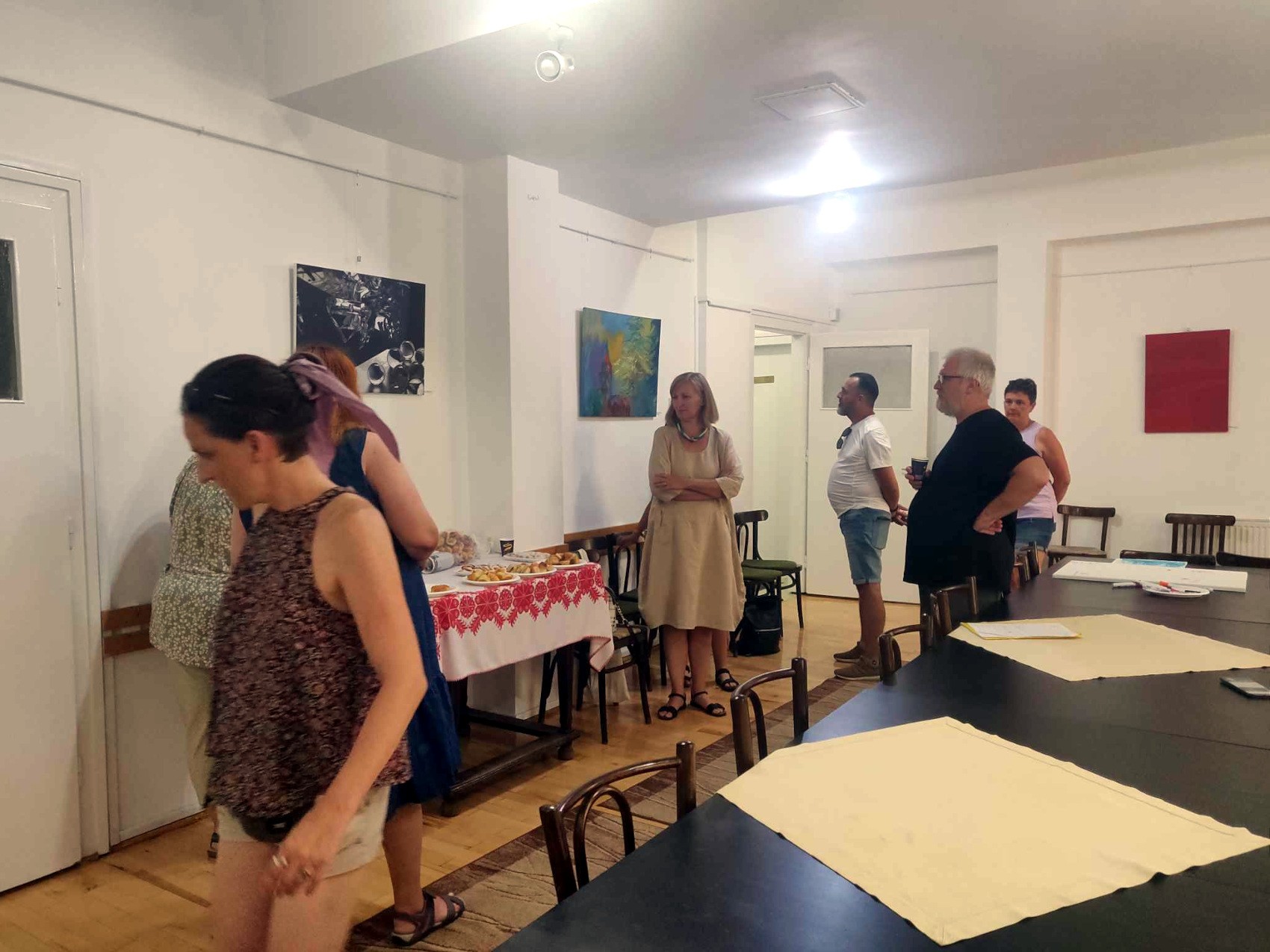 A táborban született alkotásokat a kolozsvári belvárosi unitárius templom tanácstermében állították ki. Nyolc képzőművész munkái láthatók a tárlaton, köztük Frunză Mihail Victor tájképe, amelyet Segesvár utcái inspiráltak, Kentelki Gábor nagy méretű olajfestménye, amely a mezőmadarasi református templomot ábrázolja. Nagy Dalma merített papíron tussal és tollszemmel rajzolva egy „körképet” tár a néző elé a világról.