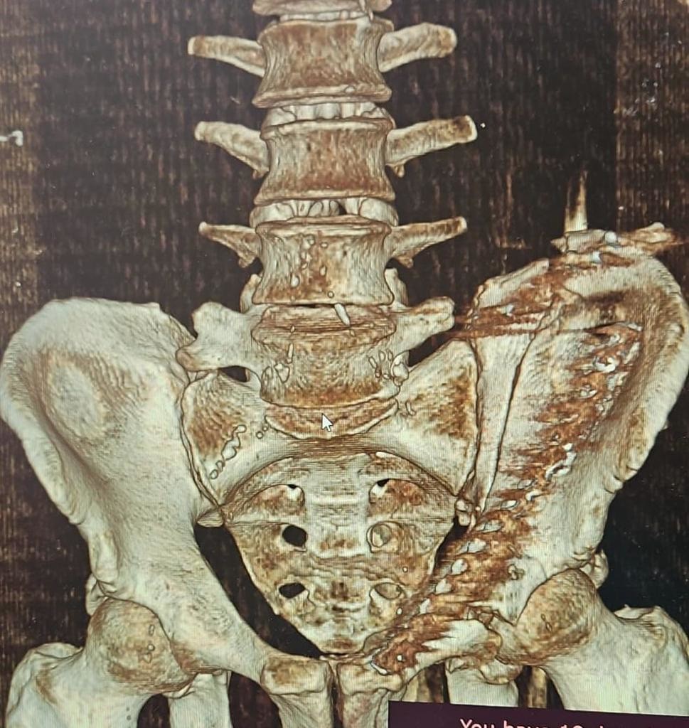A medencegyűrű helyreállításához és stabilizálásához öt nap alatt két egymás utáni beavatkozásra volt szükség ahhoz, hogy elkerüljék a kismedencei szervek súlyos sérülését.