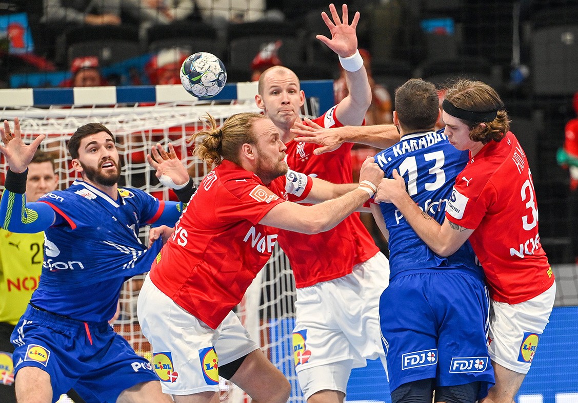 Az olimpiai címvédő Franciaország elődöntőbe jutott a magyar–szlovák közös rendezésű kézilabda-Európa-bajnokságon, miután óriási csatában 30-29-re legyőzte a világbajnok Dániát a középdöntő negyedik, utolsó fordulójában, szerdán a budapesti MVM Dome-ban.