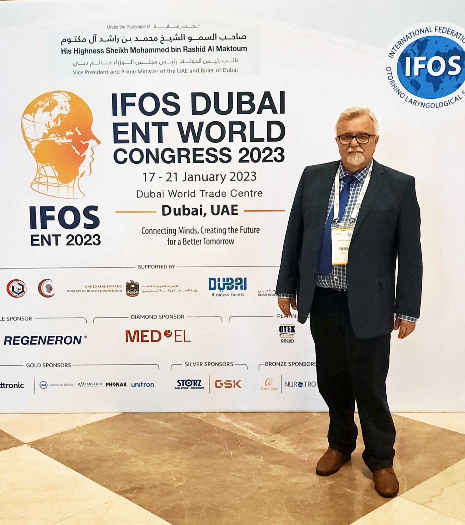 „A tudást összekapcsolva jövőt teremteni egy jobb holnapért” – ezzel a mottóval tartották januárban az Egyesült Arab Emírségek Dubaj városában a 22. Fül-Orr-Gégészeti és Fej-Nyaksebészeti Világkongresszust, amelyet négyévenként tartanak meg. Rendezője az IFOS, azaz a Fül-Orr-Gégészeti Társaságok Nemzetközi Szövetsége, egy olyan apolitikus szervezet, amely körülbelül 120 tagország 50.000 fül-orr-gégész orvosát képviseli.