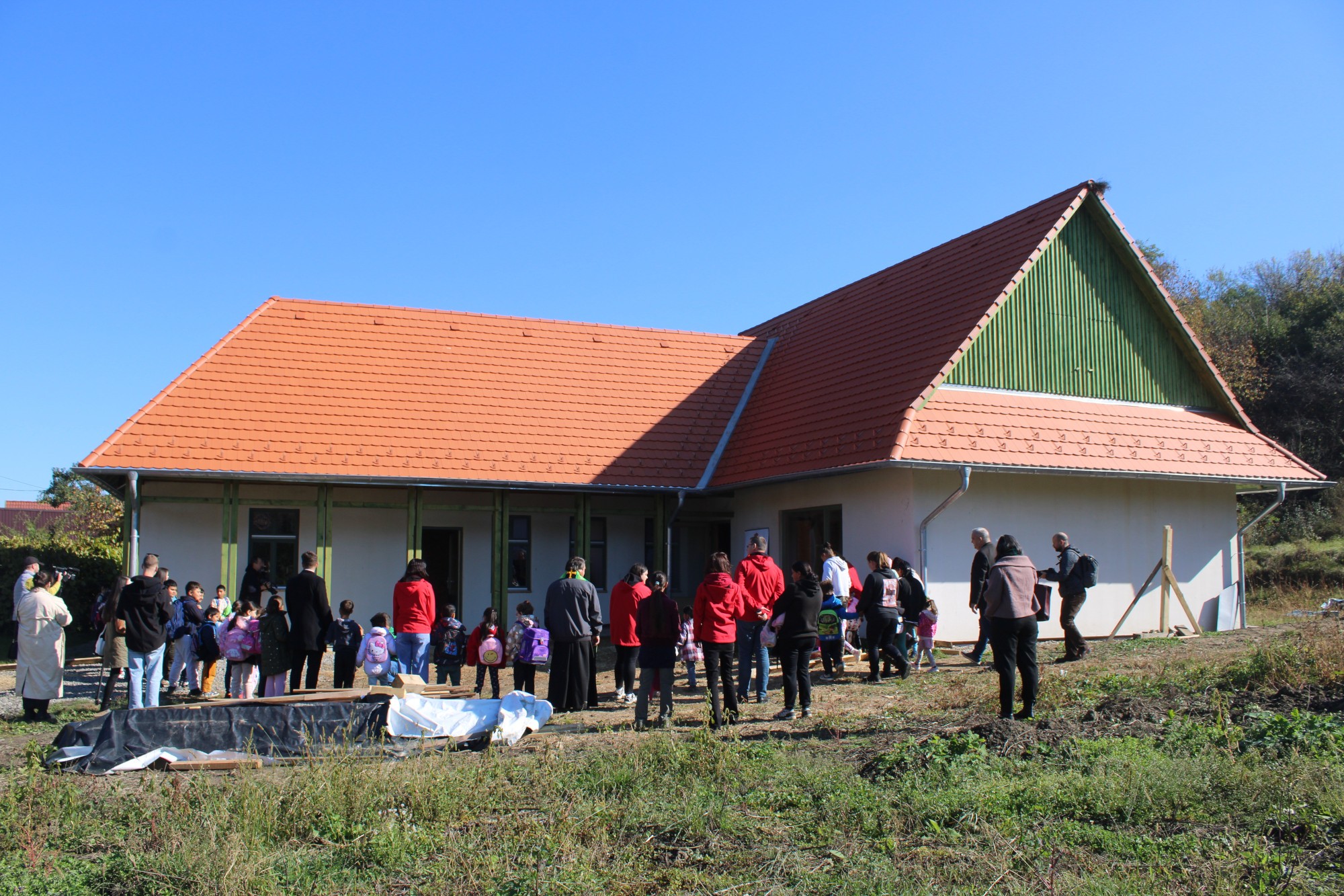 Récsei Mária, a Caritas marosszentgyörgyi központjának vezetője köszöntötte az egybegyűlteket, hangsúlyozva, hogy bár még csak a munkálatok első szakasza ért véget – felépültek a falak és a tetőszerkezet –, a második szakasz, a belső terek véglegesítése és felszerelése előtt úgy érezték, hogy szükség van arra, hogy megálljanak, és hálát adjanak azért, ami eddig megvalósult. Ezt követően a Caritas munkatársai a foglalkozásokon részt vevő gyerekekkel közösen szimbolikusan átölelték az épületet.