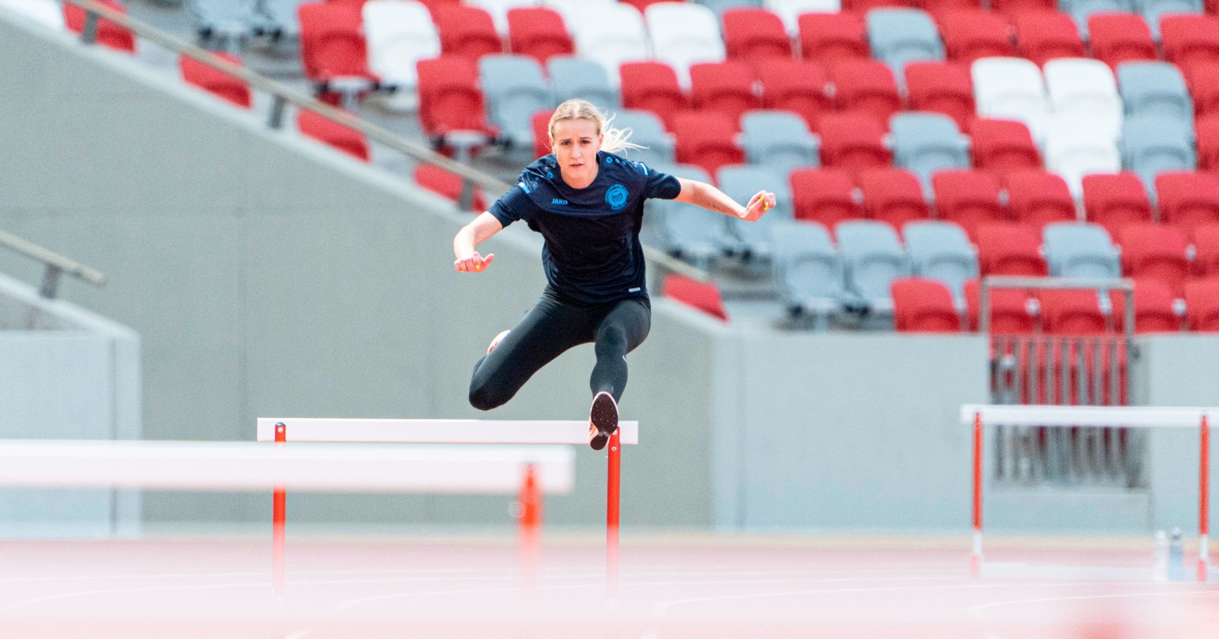 Molnár Janka gátfutó a budapesti atlétikai világbajnokságra készülő sportolók edzésén