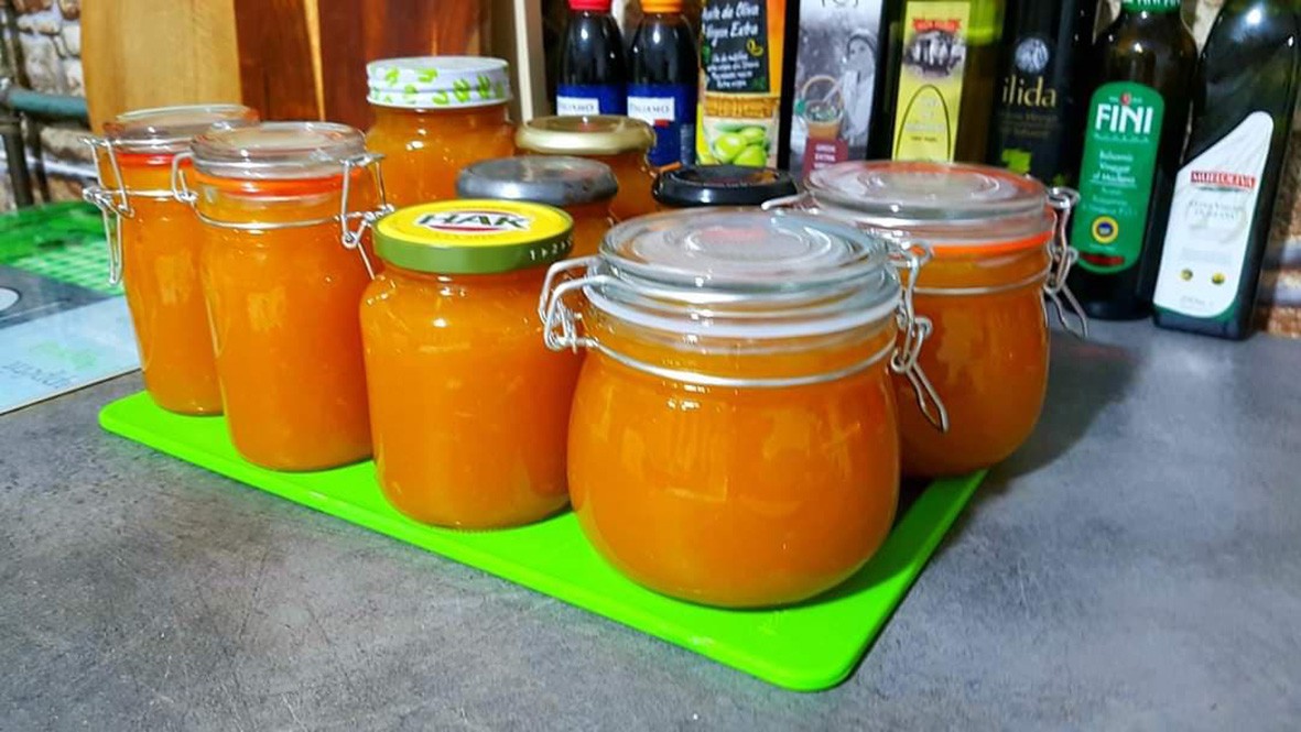 Három érett mangó húsát kockára vágjuk. Ha van benne kemény, fás réteg, kivágjuk belőle. Három kg narancsot teljesen kifejtünk, nem elég, ha csak a fehér rétegtől tisztítjuk meg, minden cikket kifejtünk, hogy csak a húsát kapjuk. Az ananászt is felkockázzuk, 1 kg tiszta gyümölcsre van szükség. A mangópürét előre is elkészíthetjük, a mangókockákat cukor nélkül felforraljuk, pürésítjük, még kb. 10 percet így is főzzük, majd lehűtjük és dobozokban lefagyasztjuk. Ehhez a mennyiséghez 3 dl elég. Három citrom levét, egy citrom és egy mandarin héját is belereszeljük. Egy kg cukrot, 1 darab fahéjrudat adunk hozzá. Félórai folytonos keverés után a fahéjrudat eltávolítjuk. Botmixerrel kidolgozzuk, majd 20 perc főzés után 3 tasak gelfixet 12 dkg cukorral összevegyítve a dzsemhez adunk. Így még egy percet főzzük. Üvegekbe töltjük, szárazdunsztba tesszük. Forró tejjel, pirítósra kenve, tejberizzsel, palacsintába, sütikbe használjuk, de hús mellé is nagyon finom.
