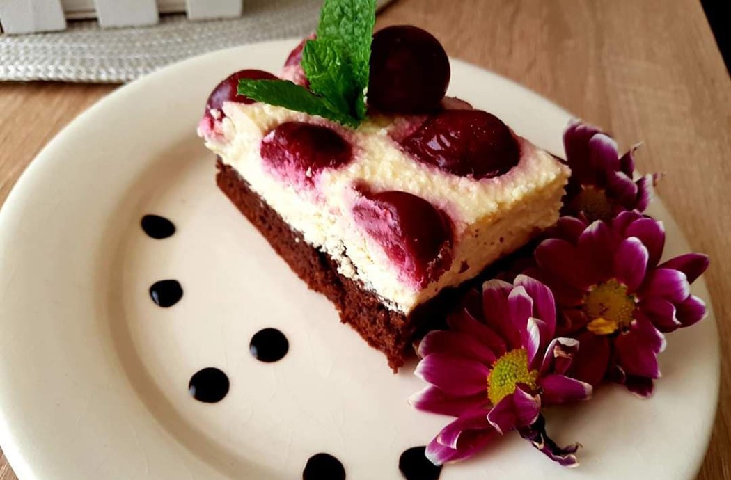 Ordás töltelék: egy kg orda, két tojás + egy tojássárga, egy citrom reszelt héja, 18 dkg porcukor, 4-5 kis tasak vanília, egy doboz mascarpone (elhagyható, de ettől krémesebb lesz). Az ordás tölteléket rákenjük a kakaós masszára, majd 50 dkg kimagolt meggyet helyezünk az ordás töltelékre. 180 C-fokon 10 perc, 160 C-fokon 35 perc alatt készre sütjük. Tálalhatjuk meggyszósszal, vaníliafagyival vagy pudinggal.