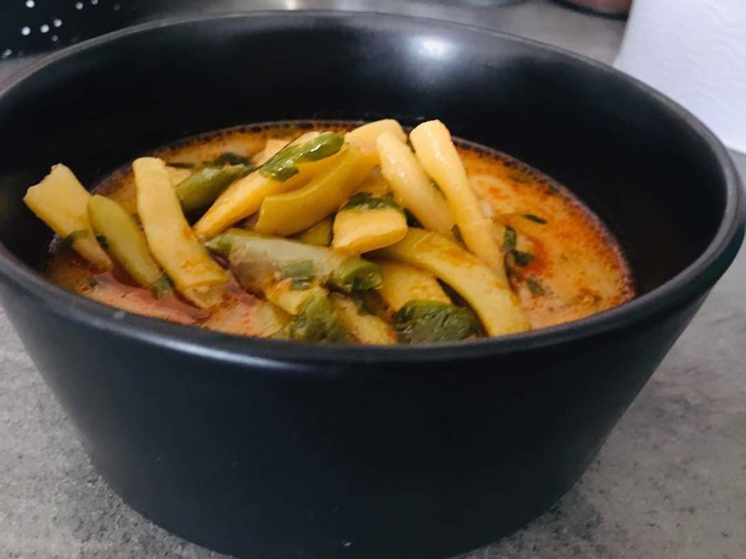 A kertünkből szedett zöldfuszulyka az igazi bio, ízletes, friss, roppanós. 60 dkg zöldfuszulykát megpucoltam, tördeltem, alaposan megmostam. Négy liter vízzel, egy fej hagymával, egy nagy csokor petrezselyemzölddel és sóval főni tettem. Kb. 20 perc alatt meg is fő. Kevés olajat meglangyosítottam, egy púpozott mokkáskanál pirospaprikaport, egy evőkanál lisztet kikevertem, rántást készítettem, de nem pirítottam meg, csak kevés vízzel simára kevertem. A leveshez adtam, és összefőztem. Egy kávéskanál cukrot, ha úgy érezzük, sót is teszünk még a levesbe. Fél dl zsíros tejet vagy négy evőkanál tejszínt adtam hozzá, majd legvégül az ecetet. Az ecetet mindig egy kis tálkába mérem, majd erre szűrök a forró levesből, így adom a kész leveshez. Ezzel a módszerrel sohasem csapódik ki. A tányérban megszórhatjuk petrezselyemzölddel is.