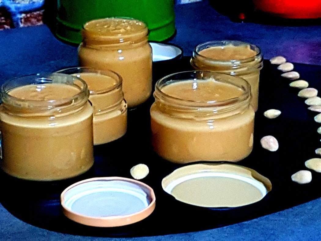 Egy kg földimogyorónak a héját lesúroljuk, tepsiben alacsony hőfokon picit megpirítjuk. Hűlni hagyjuk, majd aprítógépbe tesszük, és nagy fokozaton krémesre dolgozzuk. 10 dkg lágy vajjal, egy evőkanál kókuszzsírral, csipetnyi sóval, két evőkanál mézzel összedolgozzuk, és üvegekbe tesszük. Kenyérre, kalácsra kenve forró tejjel, kakaóval nagyon finom, de lekvárt is kenhetünk rá. Ha mogyorótortát szeretnénk készíteni, vajjal, mascarponéval összekeverve kész a mogyorókrém, amely semmi adalékot, tartósítószert nem tartalmaz. Nagyon finom.