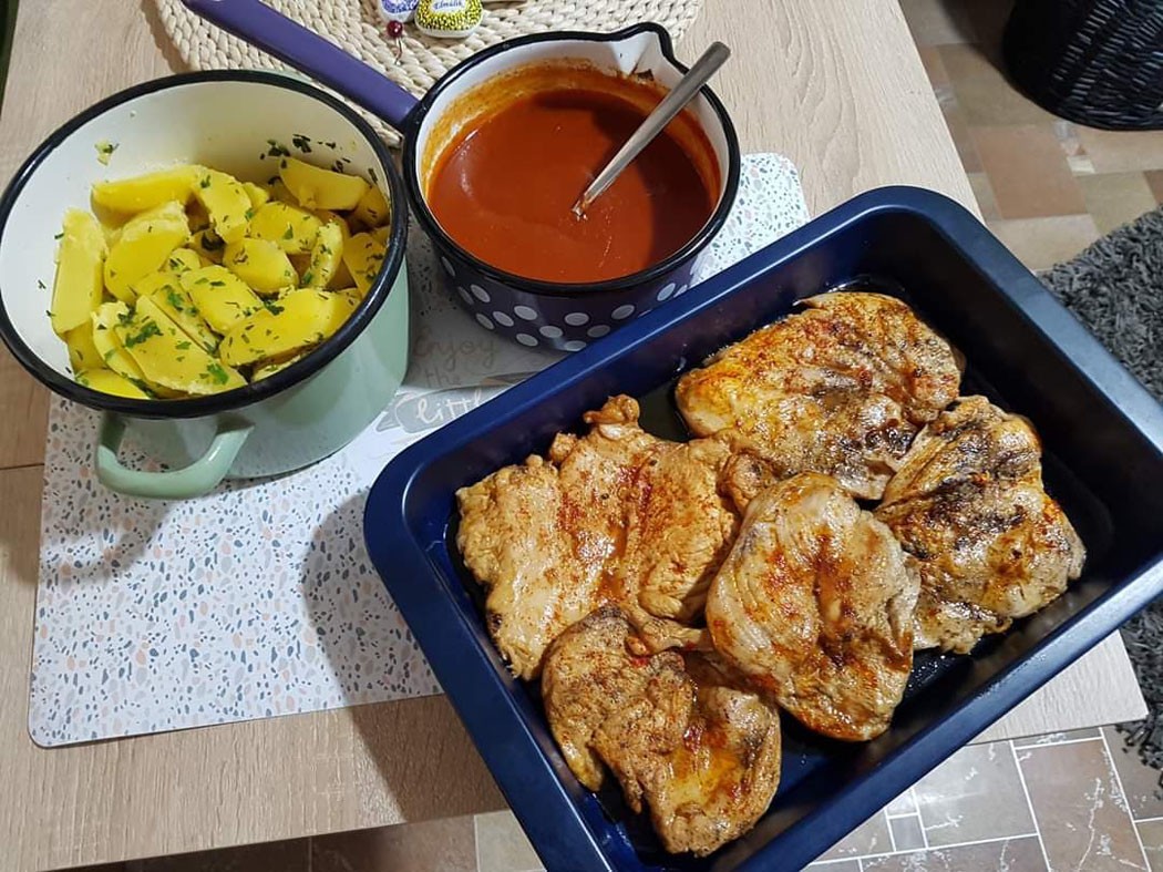 Mi natúr krumplival és paradicsomszósszal szeretjük, de krumplipürével, rizzsel is tálalható.