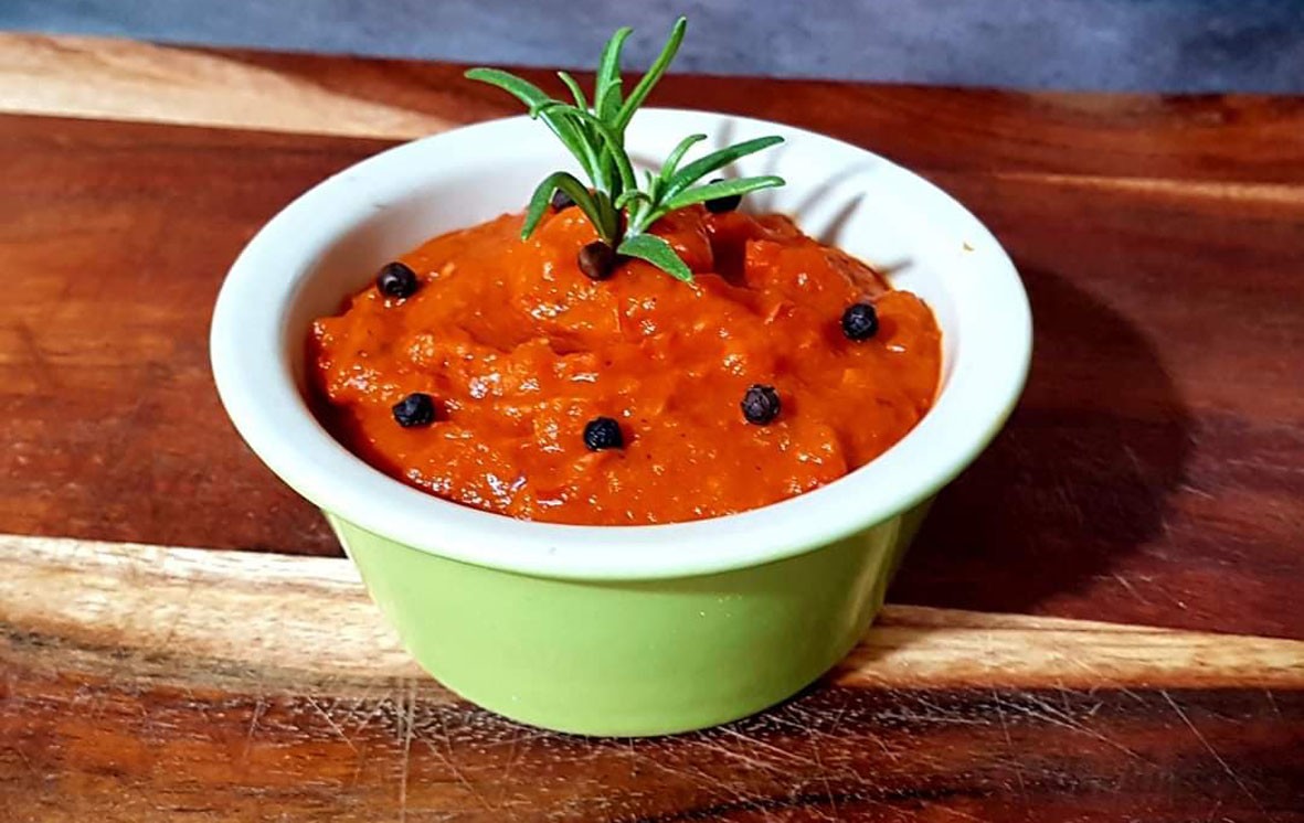 Három kg kápiapaprikát szenen megsütünk, megtisztítjuk a héjától. Négy nagy darab érett avokádót három cikk fokhagymával krémesítünk. A sült paprikát feldaraboljuk, és botmixerrel pürésítjük. Egy fej hagymát fél dl olívaolajon megfonnyasztunk, két babérlevelet, pár szemes borsot, kevés reszelt gyömbért, egy evőkanál citromlevet, egy evőkanál balzsamecetet adunk hozzá. Mindent összevegyítünk az edényben, és folytonos kavargatás mellett forrás után kb. még 15 percet főzzük. Üvegekbe rakjuk, majd másnap lerben kidunsztoljuk.