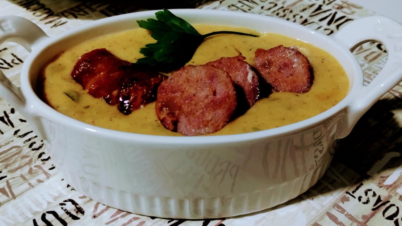 Egy kisebb fej hagymát apróra vágok, és kevés zsiradékon (vaj, zsír vagy olaj) megfonnyasztom. Két nagyobb karalábét, három nagyobb krumplit meghámozok, apró kockákra vágom, és hozzáadom a hagymához. Sózom, borsozom, csipetnyi darált pirospaprikát, darált köményt, két cikk zúzott fokhagymát, 1-2 babérlevelet, kevés tárkonyt adok hozzá. Volt alaplevem, annyit töltöttem rá, hogy éppen csak ellepje a zöldségeket. Amikor puha, hét dl növényi tejszínnel addig főzöm, amíg besűrűsödik. Sült kolbásszal fogyasztottuk. Amikor nincs alaplevem, vizet és tyúkhúsleveskockát használok.