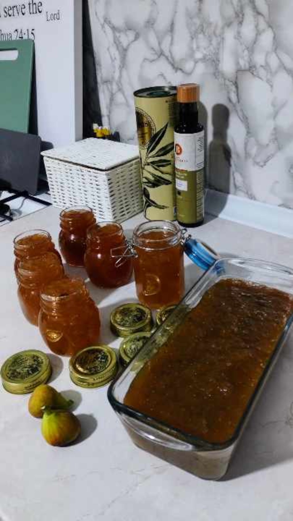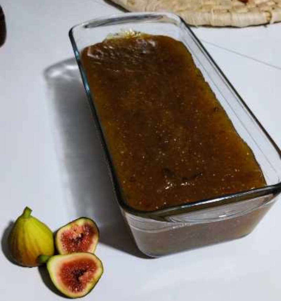 Másfél kiló fügét 70 dkg cukorral, egy citrom levével, pici fahéjjal, kevés cardamommal összefőzök. Pürésítem, hozzáadok két dl almapürét, még 10 dkg cukrot; két evőkanál pektint összevegyítek cukorral, ezt a legvégén adom a fügemasszához. A pektin hozzáadása előtt a masszát kb. 35-49 percig főzöm. Egy jénai üvegtálat vízbe mártok, beletöltöm a masszát. Másnapig dermedni hagyom, majd kiborítom, és három-négy hétig mindennap átforgatom, hogy mindkét fele jól kiszáradjon.