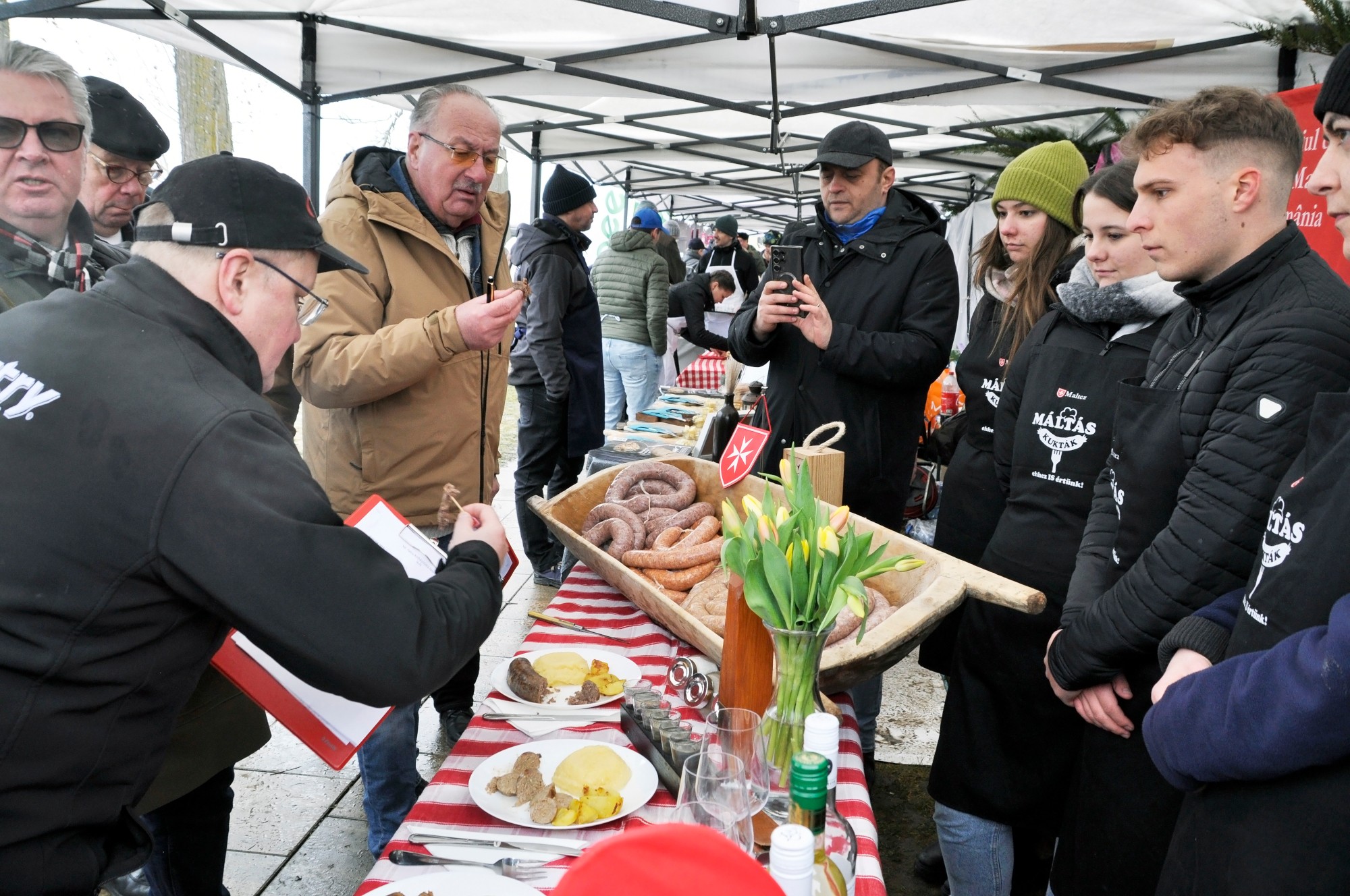 Délben munkához látott a zsűri is (Petry Endre, a Petry cégcsoport tulajdonosa, Enyedi László és Gusáth Zoltán, a Mészároscéh tagjai, Garacsi Zoltán, a Pacsirta étterem séfje és a Fehér Asztal Lovagrend képviselője, Suba Ferenc, a Petry cég termékfejlesztési igazgatója, valamint Cosmin Moldovan, a Carmangeria Moldovan tulajdonosa. Az igen szigorú és alapos kóstolgatás után a következő rangsor alakult ki. Az első helyet a Bioeel, a másodikat a Töltődik, a harmadikat pedig a Máltás kukták csapata nyerte el. A Petry és az Elit Mészárosok különdíját kapta a Kisküküllő Borlovagrend. Persze a zsűri döntését lehet kommentálni, de már nem érdemes. Reklamációt nem fogadnak el, és a kolbász is mind elfogyott. Aki pedig jobbat tud készíteni, azt várják jövőre is…