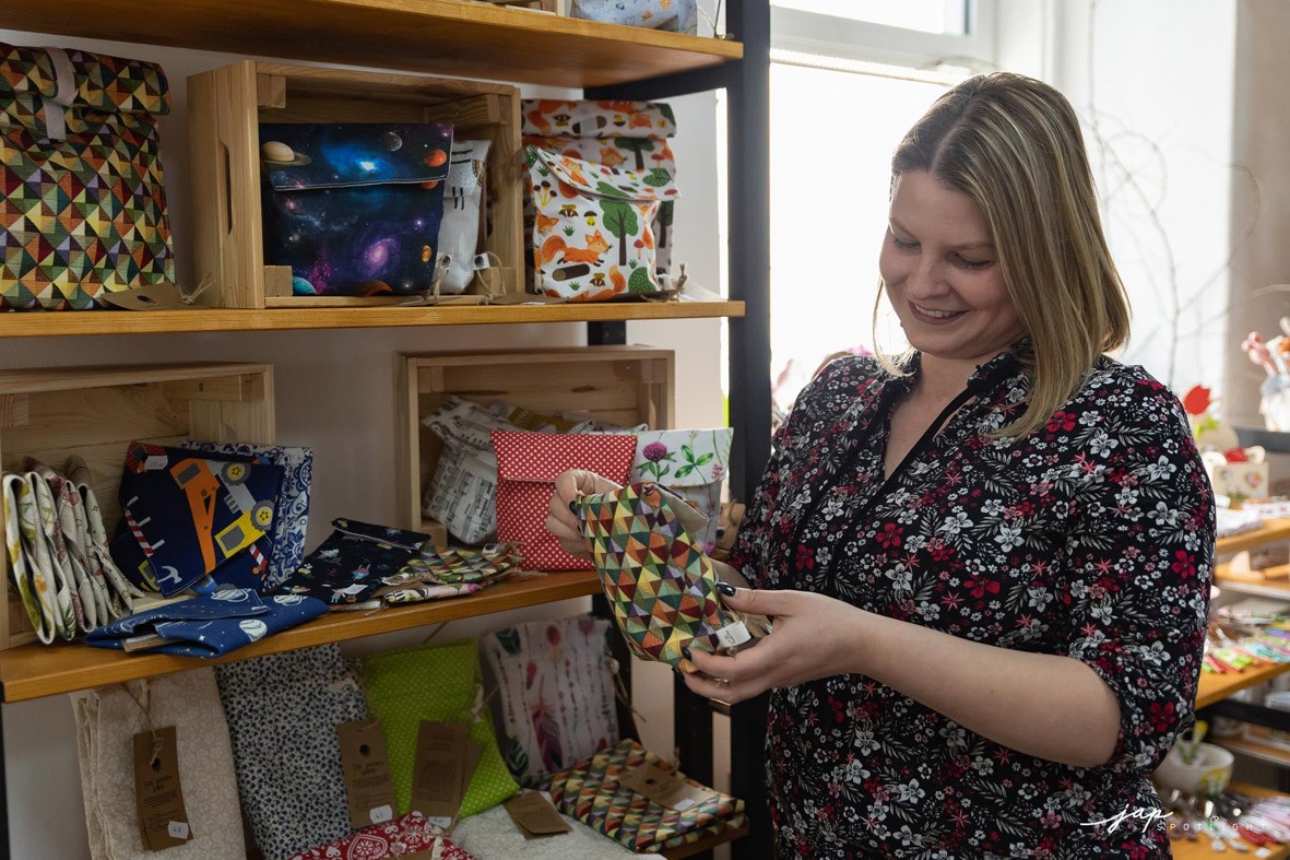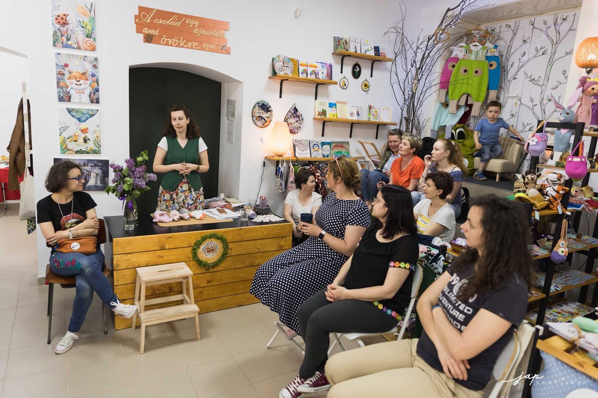 Albert Szidónia a minőségi fajátékokat forgalmazó Wood for fun vállalkozás tulajdonosa, termékeiket a különböző vásárokról már bizonyára jól ismerik a szülők. Mint mondta, eddig nem volt saját boltjuk, vásárokon értékesítették az erdélyi kézművesektől származó fajátékokat, majd az Angyalkaraván keretében bekapcsolódott az immár több mint hatezer tagot számláló Női vállalkozók Facebook-csoportba, és ezáltal a játékok kapcsán ott több kézművessel is kapcsolatba került, együtt jártak vásárokra az Angyalkaraván keretében, és így jött az ötlet tavaly karácsony táján, hogy a sok csodaszép kézműves játékot összetennék egy boltban. Tavasszal megtalálták a tökéletes helyszínt ehhez a marosvásárhelyi Posta utcában, az egykori bábszínház helyén, és nemrég meg is nyitották a boltot, ahol jelenleg 31 kézműves munkái találhatók meg, közülük 29-en a Női vállalkozók csoportnak a tagjai.