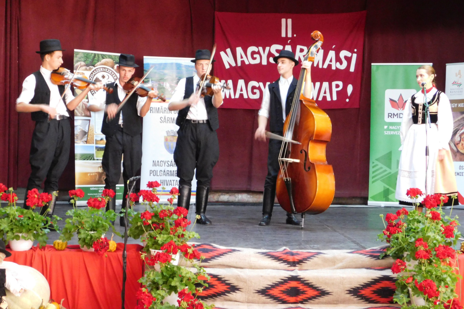 A nagysármási magyar nap művelődési műsorának megnyitóján, amelyet Székely Katalin, a helyi RMDSZ alelnöke vezetett, Trombitás Jolán köszöntötte a meghívott együtteseket és a közönséget. Elmondta, hogy az egynapos rendezvény célja a magyar közönség mozgósítása, kimozdítása, hagyományaink felelevenítése, megtartása, továbbadása a fiataloknak, a magyar népzene, népdal, néptánc népszerűsítése. Ugyanakkor szeretnék ismertebbé tenni a három megye határán lévő Nagysármást a megyében, Erdélyben és a nagyvilágban, hiszen lakói sokszor úgy érzik, hogy senkihez nem tartoznak. A múlt évi néptánctalálkozót megemlékezéssel, istentisztelettel és szüreti mulatsággal bővítették. Az idén beiktatták a képviselői iroda megnyitását, egy kis irodalmat és a könnyűzenét is, hogy a fiataloknak kedveskedjenek. A CORAX együttessel régi slágerek felelevenítése mellett helyi fiatal tehetségeket is felkértek, hogy zenéljenek.