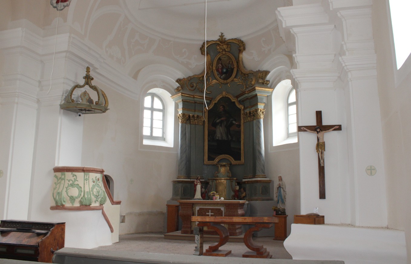 – A templom a késő barokk stílusjegyeit hordozza. Egyhajós, félköríves szentélyű, kétszintes nyugati toronnyal. A templomot hat évvel ezelőtt be kellett zárni, mert veszélyessé vált. Az történt, hogy a nyolcvanas évek elején deszkapadlót helyeztek el benne, s ezt a padlózatot súlyosan megtámadta a könnyező házigomba. Annyira tönkretette, hogy a gombásodás a falakra is kiterjedt, s az egész épületet veszélyeztette.