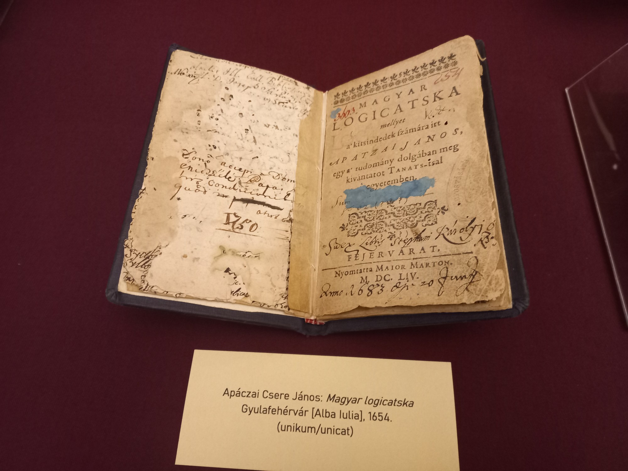 Az Apáczai 400 nevű kiállításon a Teleki Tékában őrzött Apáczai-kötetek kaptak helyet, többek között a szerző Magyar logikácska (Magyar logikátska) című műve, ami az egyetlen ismert példány a világon az első kiadásból. A tárlat kurátora, László Lóránt elmondta, hogy az 1654-ben Gyulafehérváron megjelent könyv eredetileg az Enciklopédia egyik részeként készült, ám átdolgozás és bővítés után önálló kötetként látott napvilágot. A tankönyvnek szánt műben Apáczai logikai alapfogalmakról, metafizikai összefüggésekről, illetve az ítéletlogika és a következtetés természetéről értekezik. A szerző maradandó érdeme ugyanakkor egyes logikai alapfogalmak magyarosítása is.