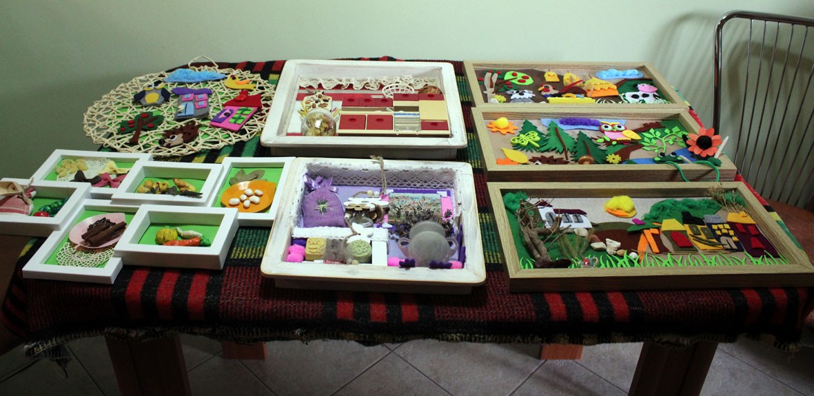 Bagoly lakta erdő, tenger parányi hajókkal, szénaboglyás falusi táj, pálmafás dzsungel és még sok más kedves, izgalmas jelenet kel életre Szia Ágnes filcből és egyéb természetes anyagokból, apró kellékekből született képein.
