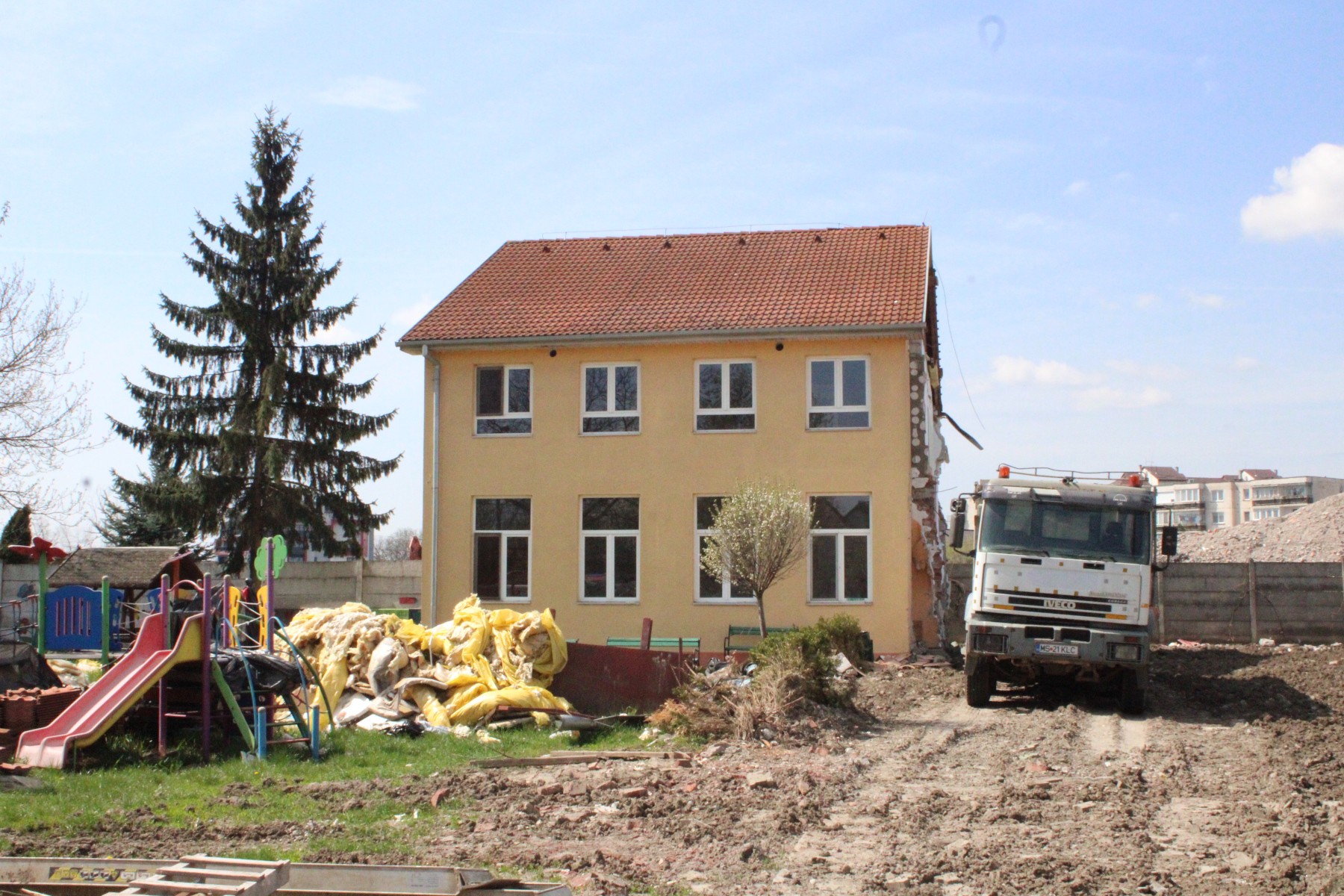 Tavaly nagyrészt lebontották a régi épületet, majd azt követően leállt a munkafolyamat, és pár hónapja néma csend honol az Egyesülés negyed egyetlen napközi otthonos óvodájánál. A marosvásárhelyi Szabadi úti Gyermekek Világa napközi otthon és óvoda manzárdépítési és épületbővítési munkálatai során a fő épületszárnyat teljesen lebontották, ami az érintettek döbbenetét és sajnálkozását váltotta ki. Az ősz óta mintha menekülőre fogták volna a vendégmunkások, félbe-szerbe hagyva hever minden a szétrombolt udvaron, újdonságnak talán a bontott épületrész alatti terület elegyengetése mondható. Nemrég megjelent egy billenőautó, de egyelőre csak parkol.