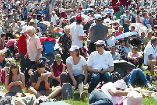 Mintegy százötvenezren gyűltek össze szombaton délelőtt a csíksomlyói hegynyeregben a pünkösdi zarán...