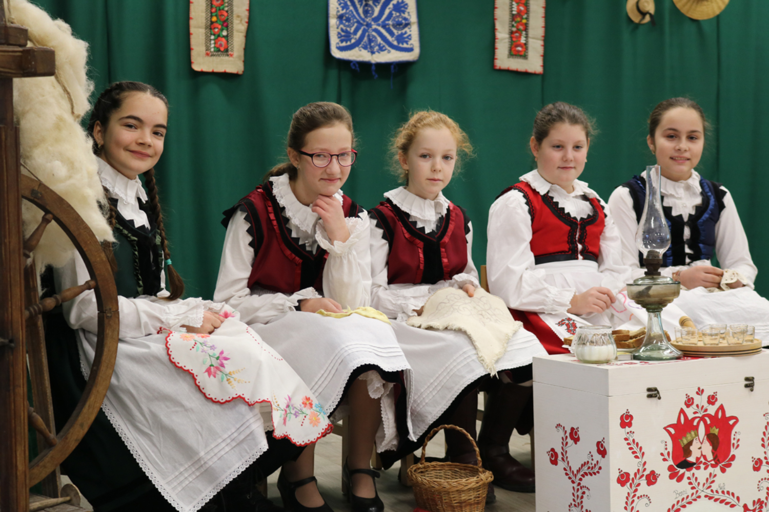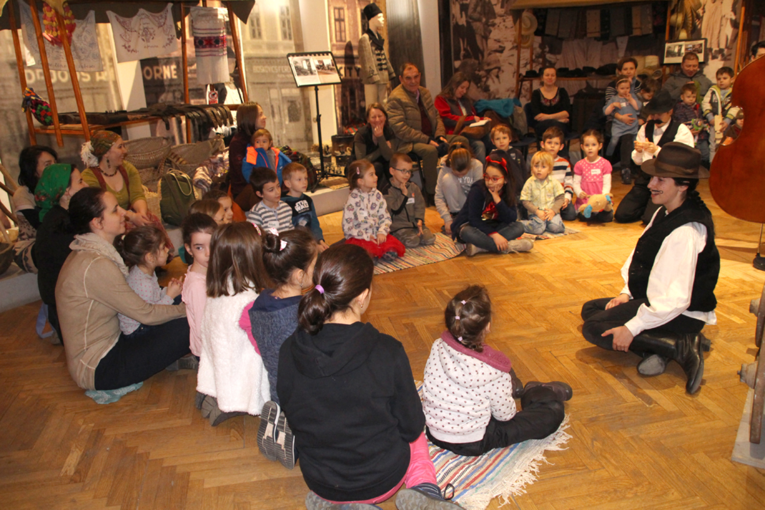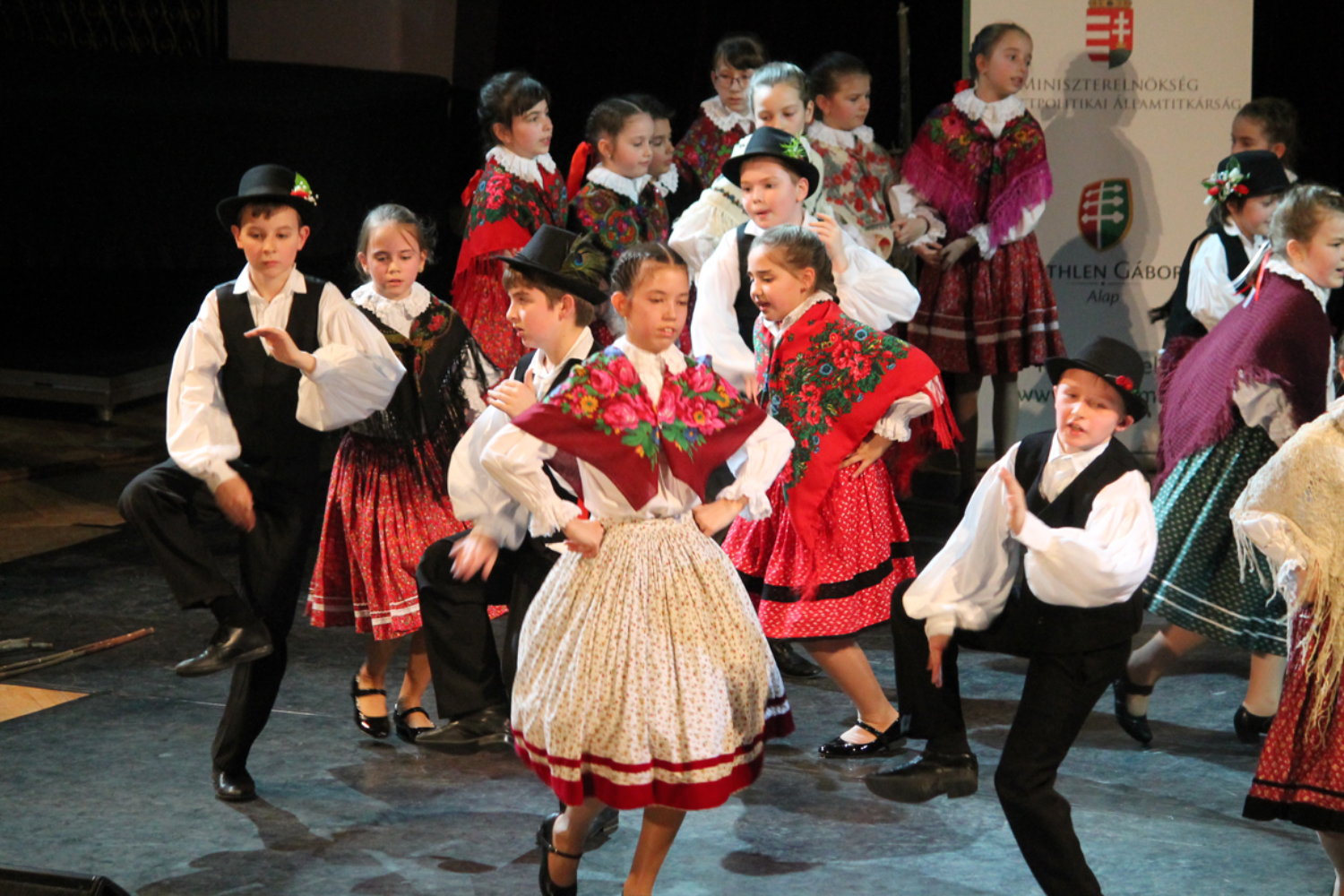 Gyerekeket toboroz a marosvásárhelyi Boróka néptáncegyüttes