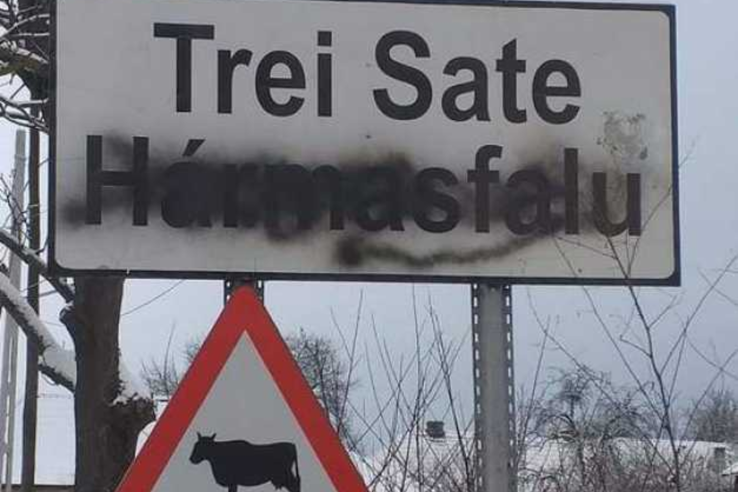 Lemázolták a hármasfalui helységnévtáblát (is)
