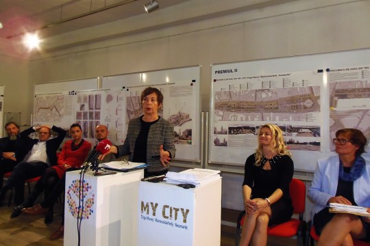 A grémium, a városi tanács tanácsosai, építészek és meghívottak, valamint a sajtó képviselőinek jele...