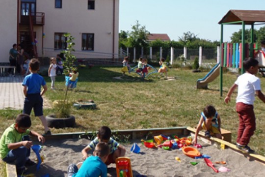Vidám zsivajban ünneplik a gyermeknapot a korszerű szentannai napközi otthon udvarán.