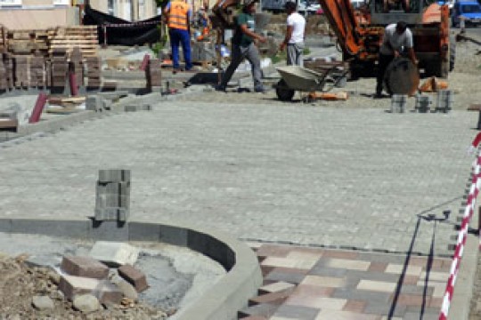 Mintegy másfél hónapja ismét építőtelep Nyárádszereda központja, munkagépek és munkások nyüzsgése, i...