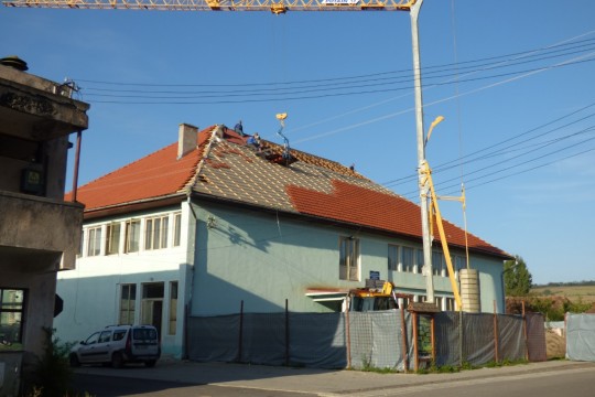 Nyárádmagyarós központjában hatalmas daru emelkedik az égnek, kerítések veszik közre a kultúrotthont...